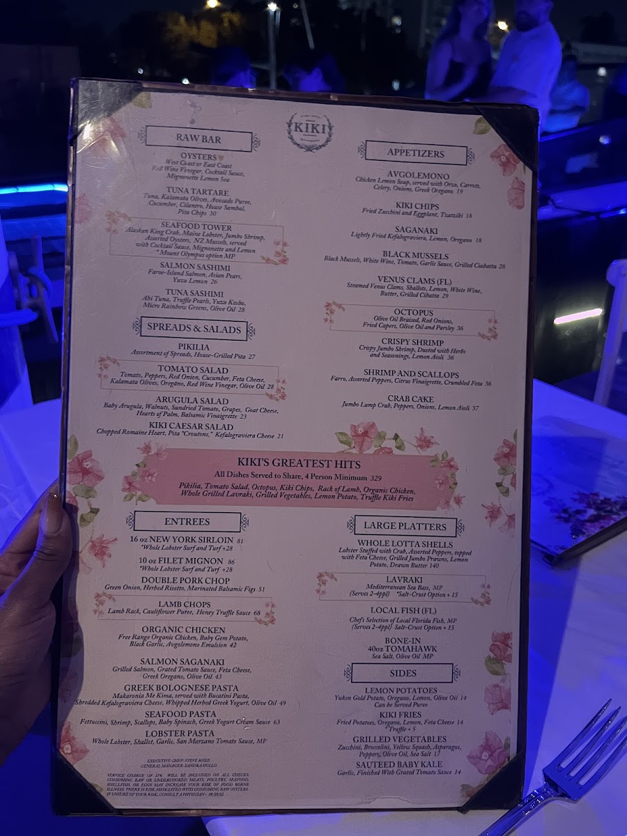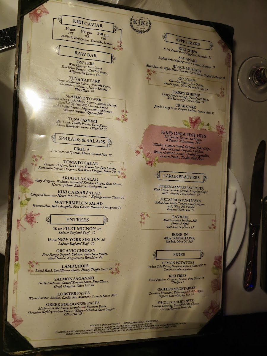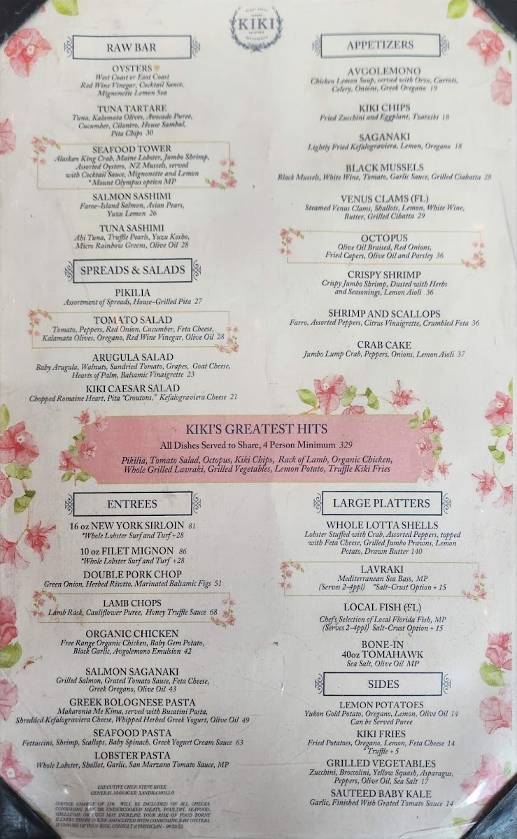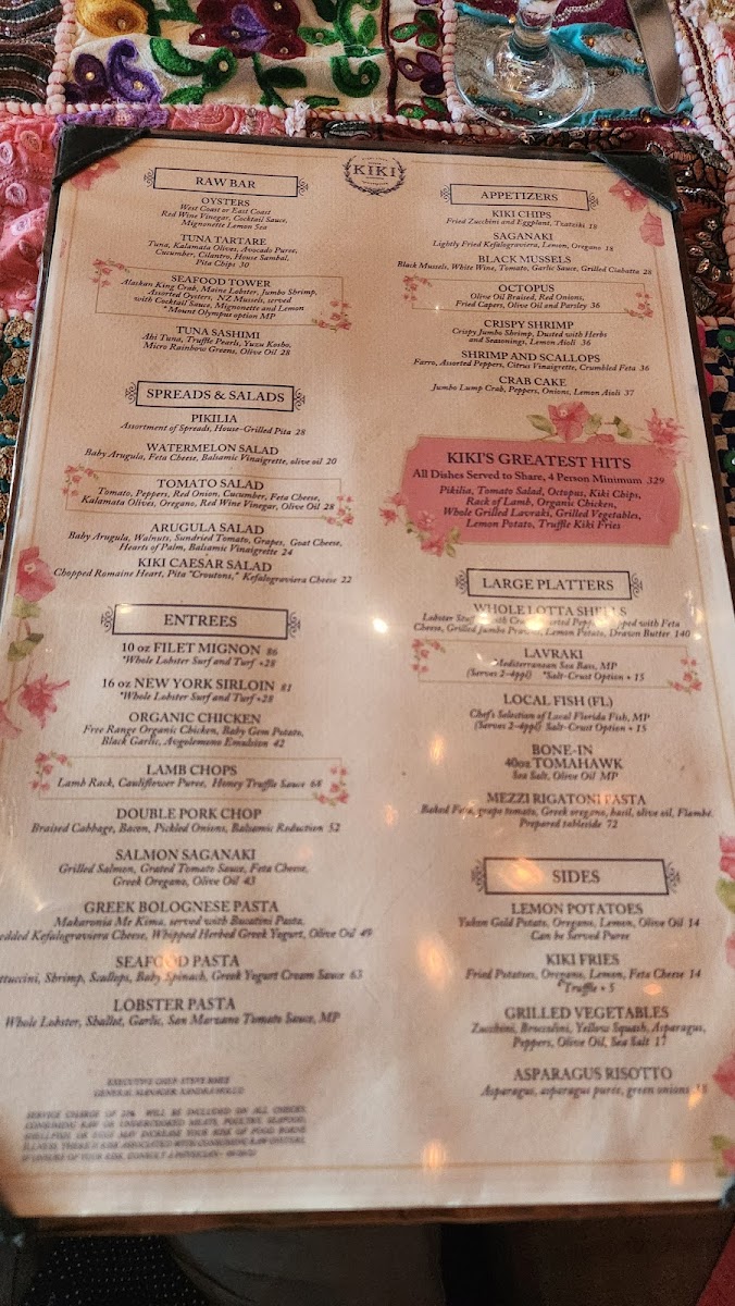 The menu naturally complements social occasions, pairing well with cocktails such as Jefa's Margarita or the Kiki Lime Pie Martini, and special touches like champagne or flavorful sauces that enhance each plate. Alongside these are casual favorites like Kiki fries and calamari that add a friendly, shareable element, fitting the restaurant’s dynamic environment without overwhelming the palate.